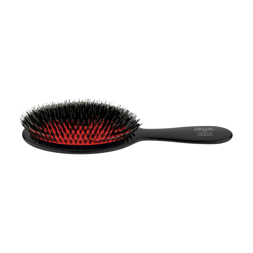 Le spazzole con setola di cinghiale rinforzata in nylon sono adatte anche a extension e capelli trattati. Offrono una spazzolatura delicata con effetto lucidante e controllo della polvere.