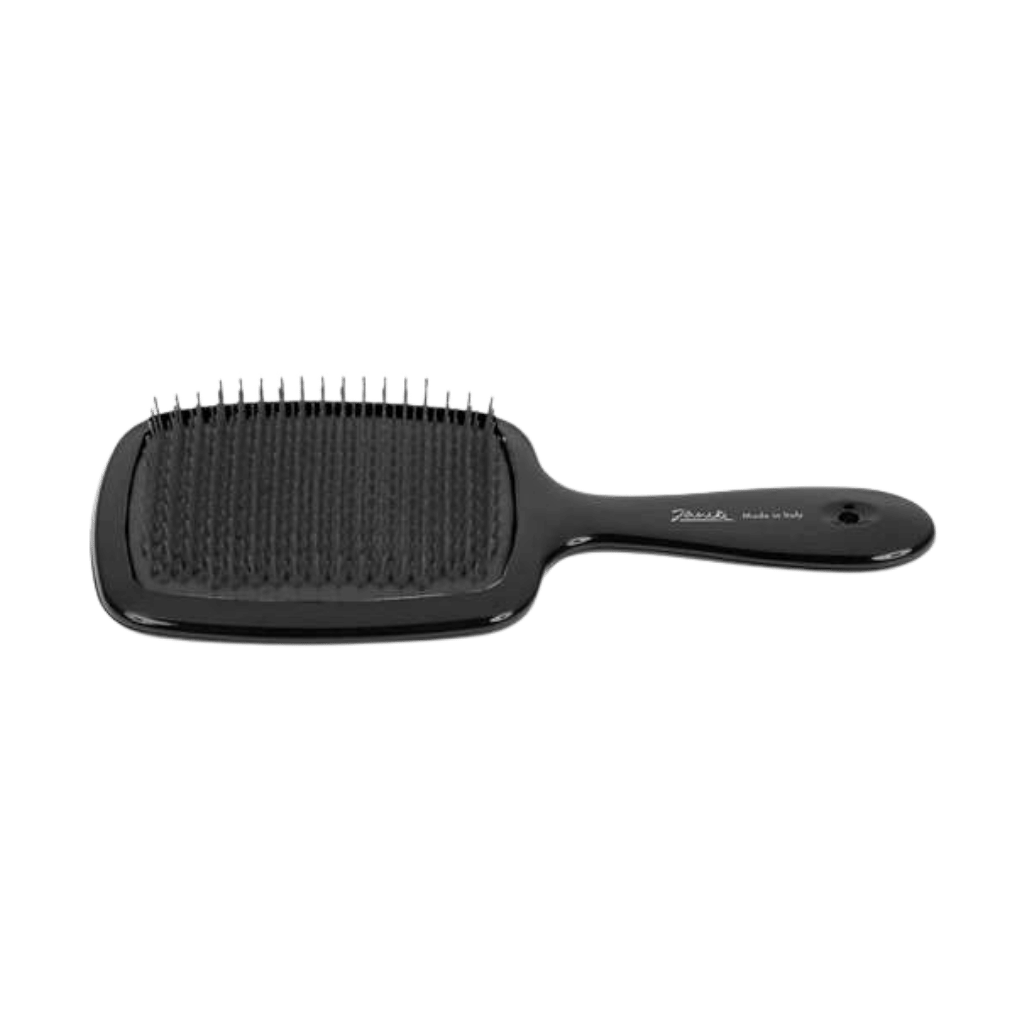Le Superbrush in carbonio o corno sintetico, con base alveolata, si utilizzano anche su capelli bagnati, durante l’applicazione di maschere e balsami, riducendo i tempi di asciugatura.