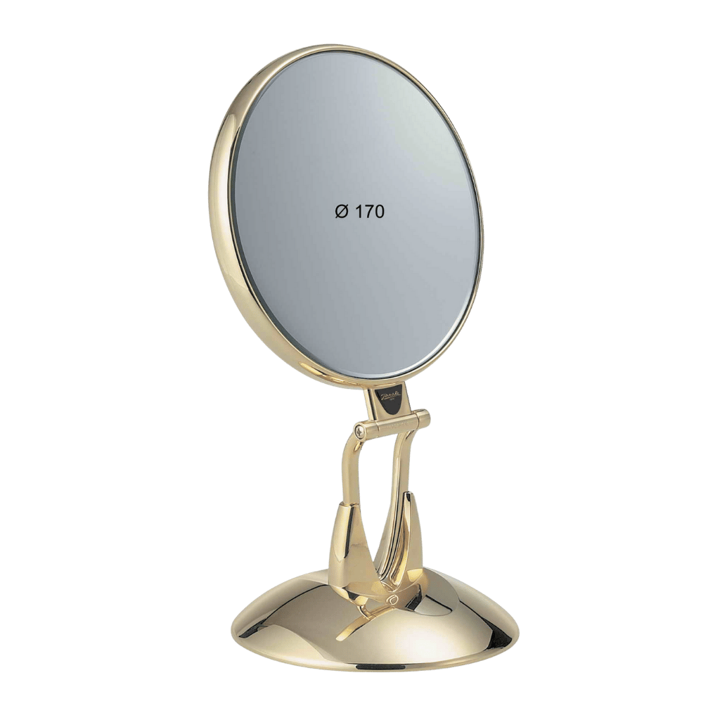 modelli da appoggio o con supporto, con diametri diversi, anche girevoli o bifacciali con superficie ingrandente di ben 17 cm. Strutture cromate o dorate assicurano eleganza e resistenza, offrendo una visione chiara e controllata del viso, ideale per il make up quotidiano e i trattamenti di skincare.