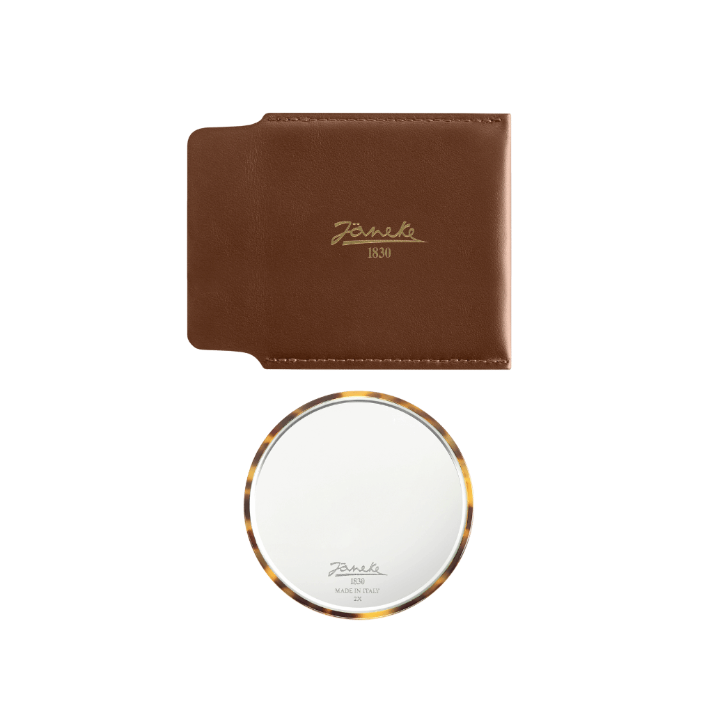 diametri 65 o 73 mm, disponibili in pregiate finiture corno-oro o tartaruga-oro, pensati per ritocchi veloci fuori casa. Un accessorio elegante e indispensabile, che porta con sé tutta la qualità e l’artigianalità distintiva del marchio Jäneke.